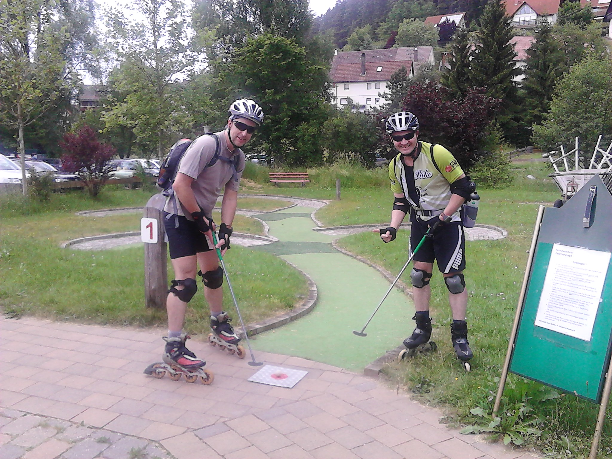 Bei um 40 Grad Hitze haben sich zwei auf den Weg zur Skate-Minigolf-Swim Tour gemacht.