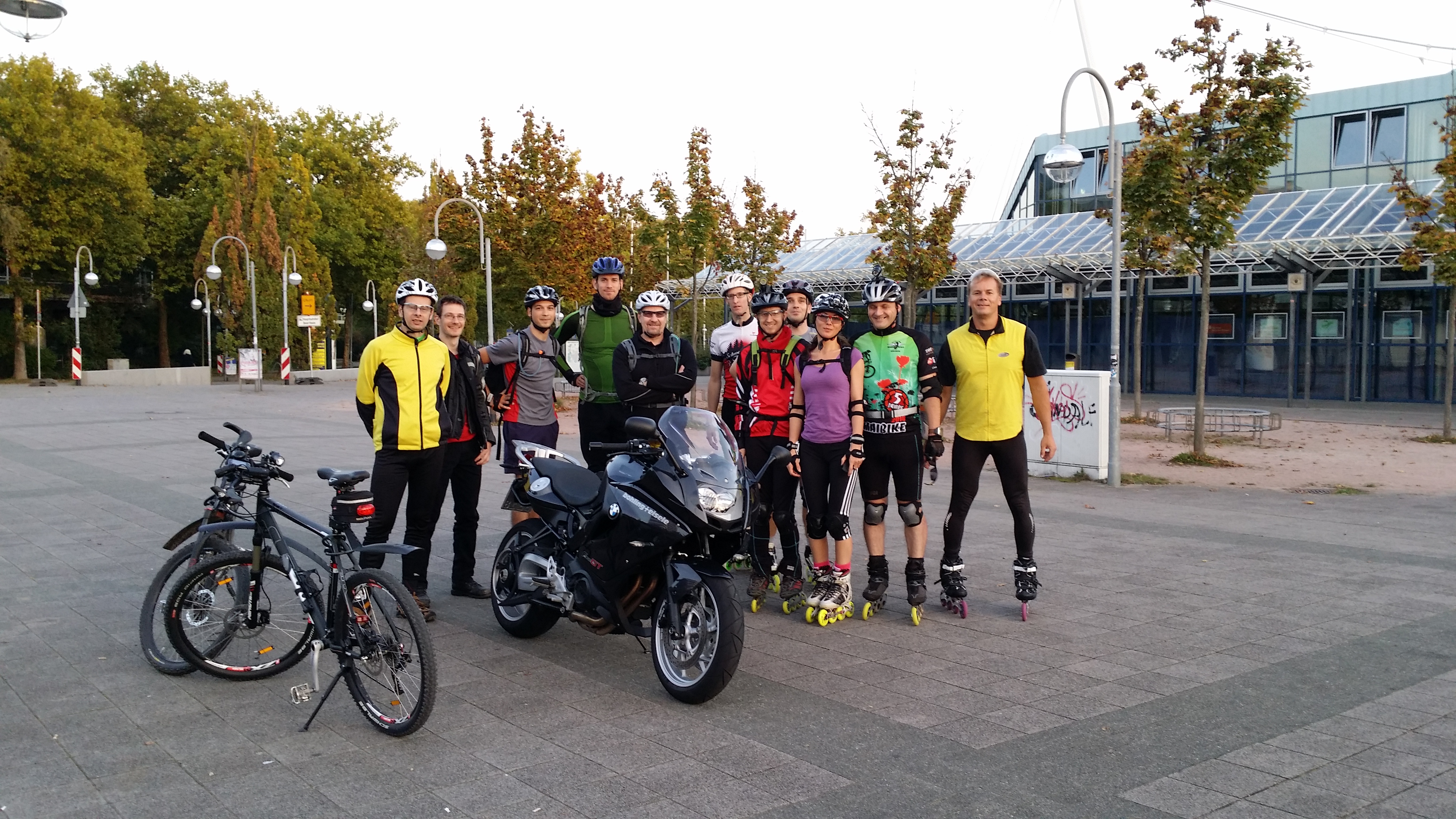8 Inlineskater + 2 Fahrradfahrer + 1 Gast mit Motorrad, wenn kein Motorrad auch Inlineskater 🙂