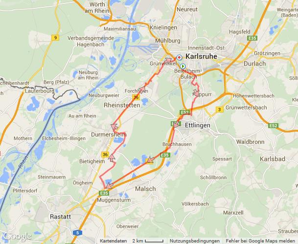 Sehr viel Wochenendverkehr gefährdete heute unseren Lauftreff da viele von heute 10 Teilnehmer/in im Verkehr stecken geblieben sind. Somit konnten wir erst um 18:52 Uhr starten, das tat unserer guten Laune keinen Abbruch. Dann wurde es doch wieder eine Marathondistanz von 41,85 Km in 1:58 Stunde und somit einer Durchschnittsgeschwindigkeit von 21,0 Km/h. Hier unsere heutige Strecke: