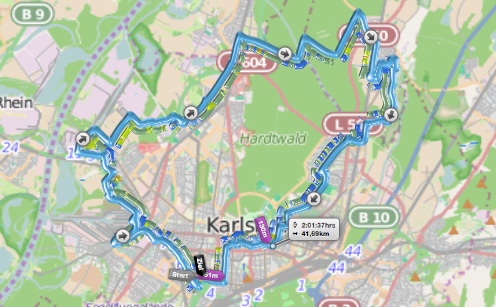 Bei bewölktem Himmel und angenehmen 21° Celsius haben sich dieses Mal sieben Skater und eine MTB auf eine Strecke von 45,9 km gemacht, die in zwei Stunden und 15 Minuten absolviert wurden.