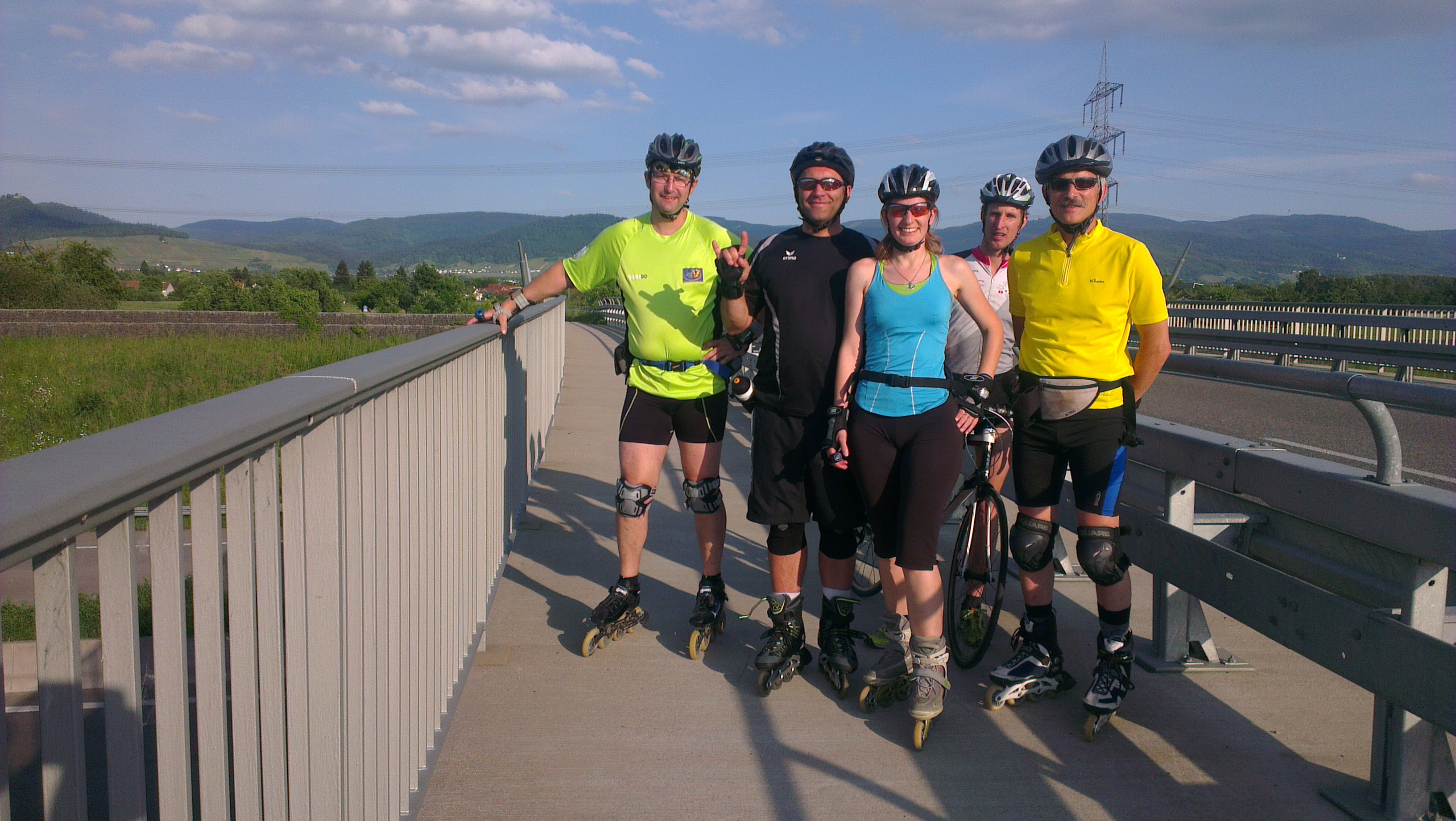 Bei diesem traumhaften Wetter haben sich auch diese Woche wieder fünf Sportler (4 mit Inline Skates, 1 mit Rad) getroffen um das Bühler Umland aus Rollen bzw. Rädern zu genießen.