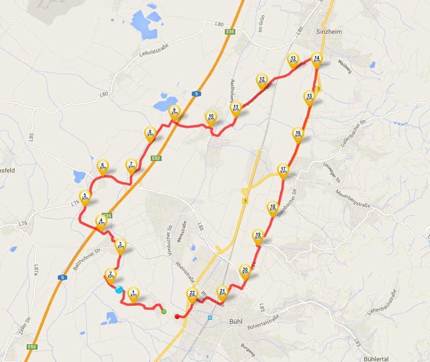 Die Strecke führte uns heute von Bühl über Balzhofen auf direktem Weg nach Oberbruch, weiter nach Weitenung über mit einem „kleinen“ Schlenker über Sinzheim wieder zurück nach Bühl.