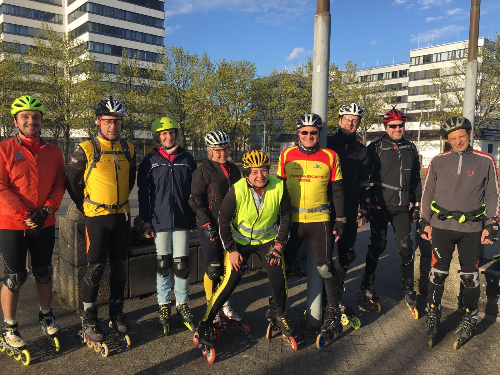 Neun begeisterte Inlineskater trafen sich, um in zwei Gruppen einen schönen Inlineabend gemeinsam zu erleben. Eine Gruppe war schneller und länger unterwegs. Die andere Gruppe langsamer und kürzer. Alle trafen wir uns dann wieder in der Roten Taube und dort gab es dann genügend Gesprächsstoff.