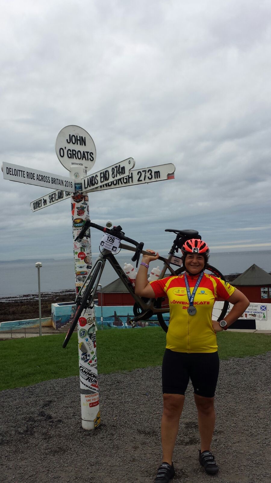 Am Samstag 10. September 2016 startete Helene am südlichsten Punkt Großbritanniens „Land’s End“ und fuhr auf Ihrem Rennrad nach „John O’Groats“ in Schottland. Dazwischen lagen neun Etappen von jeweils durchschnittlich 200 km.