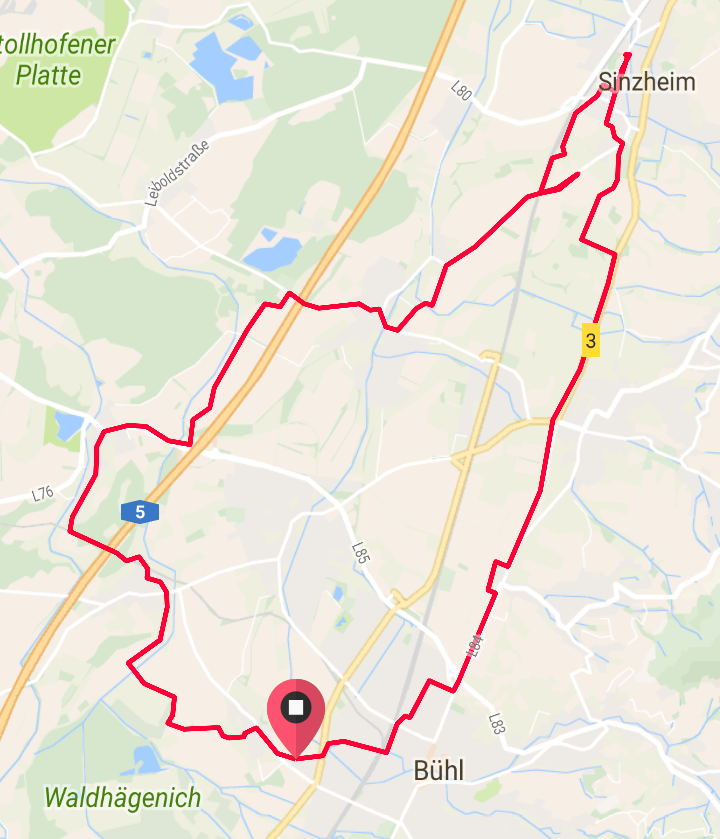 Heute führte uns der Weg erst nach Bühl und dann an Steinbach vorbei zur Eisdiele nach Sinzheim.