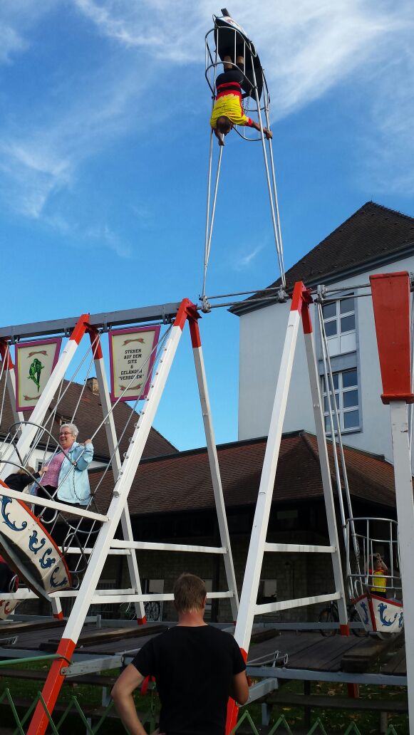 Am Sonntag 1. Oktober skateten wir 40 km zum Langenbrückener Jahrmarkt. Nach Ankunft versuchten sich einige unserer Teilnehmer an der traditionellen Schiffschaukel. einer hat den Überschlag geschafft, siehe Bild, das war spannend und vor allem lustig naja auch ganz schön verrückt 😉