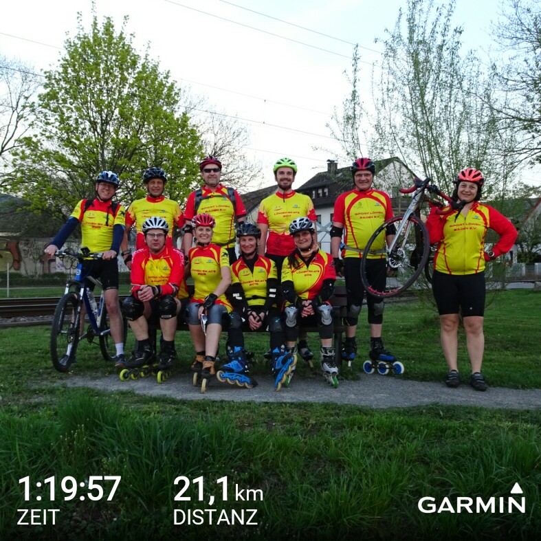 Zum dritten Inlinetreff 2018 rollten wir von der Europahalle durch Rüppurr nach Ettlingen zur ersten Pause. Auf einer am Weg gelegen Sitzbank wurde eine kurze Pause eingelegt (siehe Bild). Auf dem Rückweg skatete die Gruppe entlang der Alb zurück nach Karlsruhe zur Europahalle. Die Streckenlänge von 18,1 km (auf dem Bild ist die Strecke vom Hauptbahnhof Karlsruhe zum Treffpunkt mit dabei :-)) konnten alle Teilnehmer sehr gut schaffen. Das Tempo wurde den anwesenden Teilnehmern gerecht angepasst. Zur sportlichen Höchstleistung kam es bei zwei vorher angesagten Sprints.