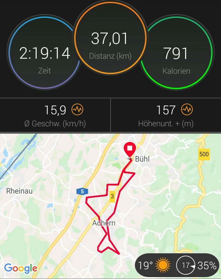 Nach dem Start in Bühl ging es über Ottersweier und Sasbach nach Oberachern und von dort weiter bis zum Ortseingang von Waldulm.