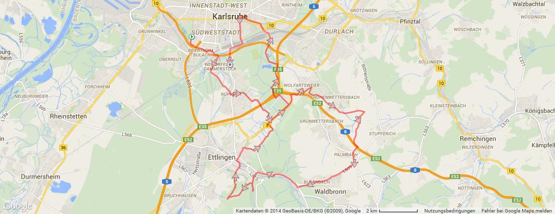 Heute vier Radfahrer mit Mountaunbike, zwei Inlineskater und ein Fußgänger, der kam zu spät von der Arbeit 🙂 Die Mountainbiker fuhren eine kleine MTB Runde siehe Karte, der Fußgänger kam zum Treffen ins Vogel in Karlsruhe und die zwei Inlineskater mussten einsehen, dass inlineskaten auf nassen Strassen dann doch nicht so viel Spaß macht wie Mehr …